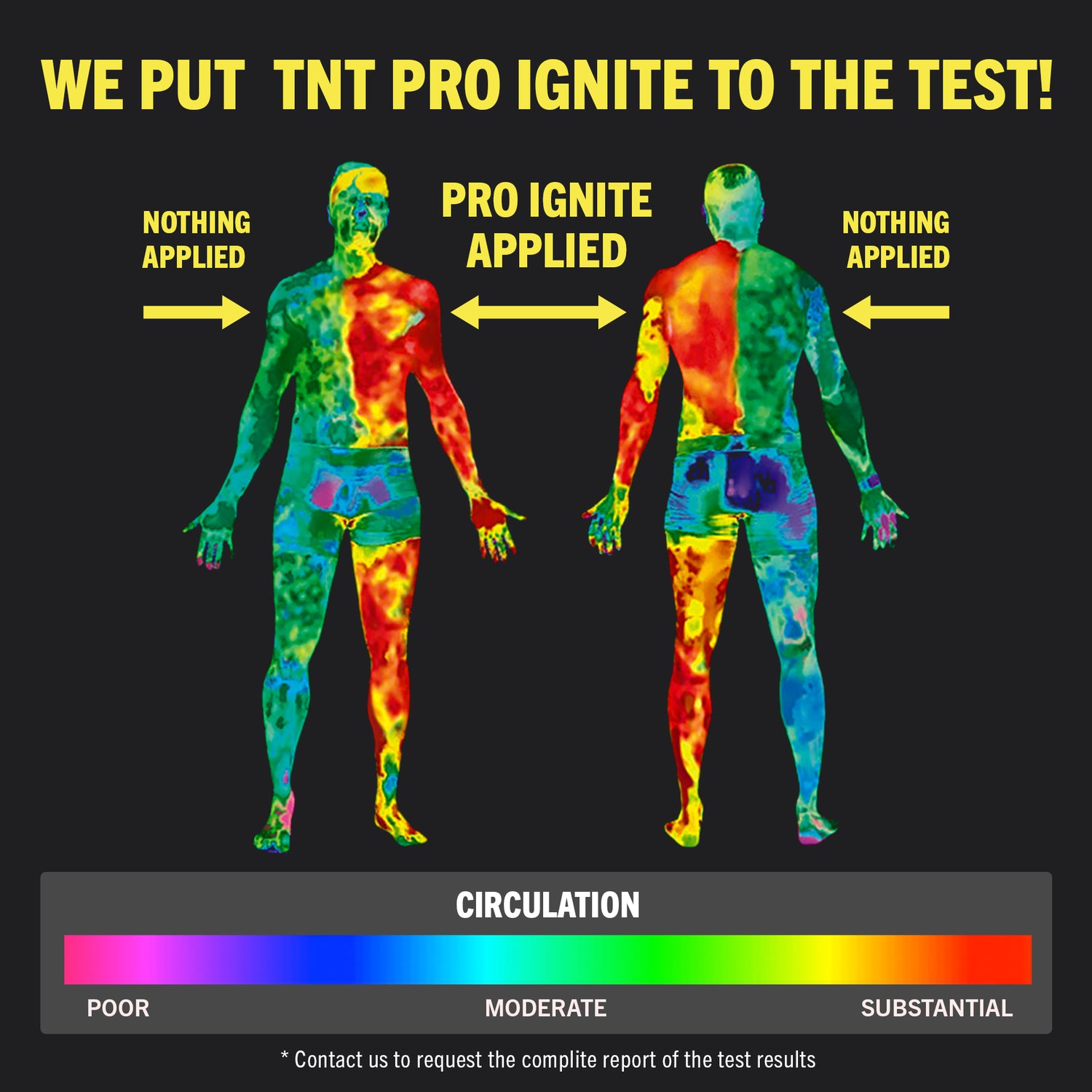 Using a thermographic infrared camera, we appliedTNT Pro Ignite to one side of the body